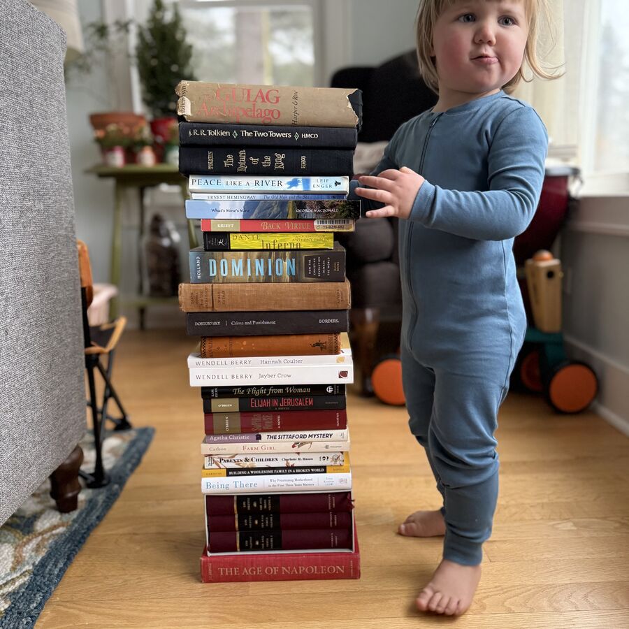 I read 28 books in 2025! This doesn't include audiobooks, school books etc. Although to be honest it doesn't look like that much when it's all stacked up; I guess next year I should aim to make the stack at least as tall as the toddler, but then she'll also be taller so maybe that is a losing proposition, haha. I love to hear book twins or "if you liked... you'll like..." suggestions!